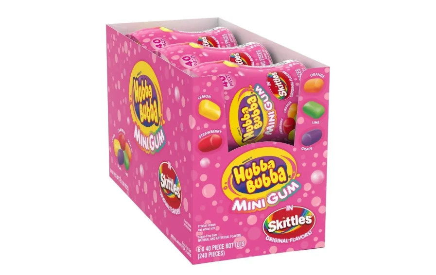 Окремо стоять більш різкі позиції: кислувата blue raspberry у стрічці, сезонні Bubble Tape Holiday або тематичні випуски, а також міні-жуйки зі смаком Skittles у великих пачках. У таких варіаціях не треба шукати тонких відтінків. Вони працюють прямо: яскравий аромат, швидкий старт, і бажання зробити ще одну бульбашку. На практиці саме такі позиції найчастіше беруть для компаній, де хочеться, щоб усі отримали різний смак і не повторювалися.
